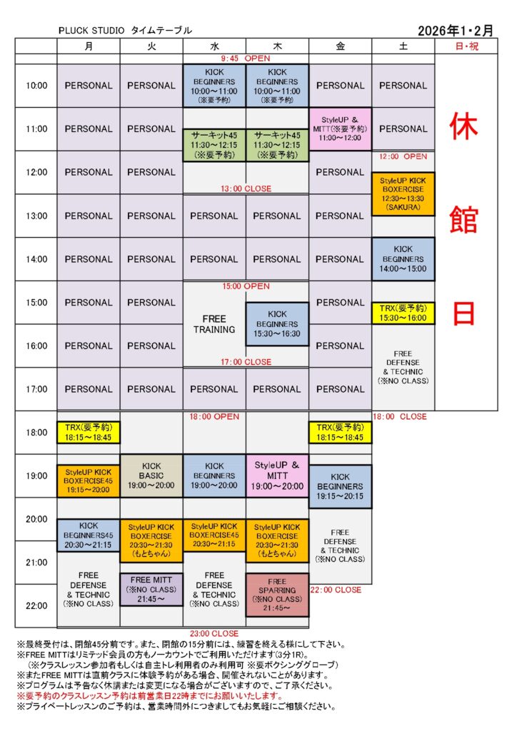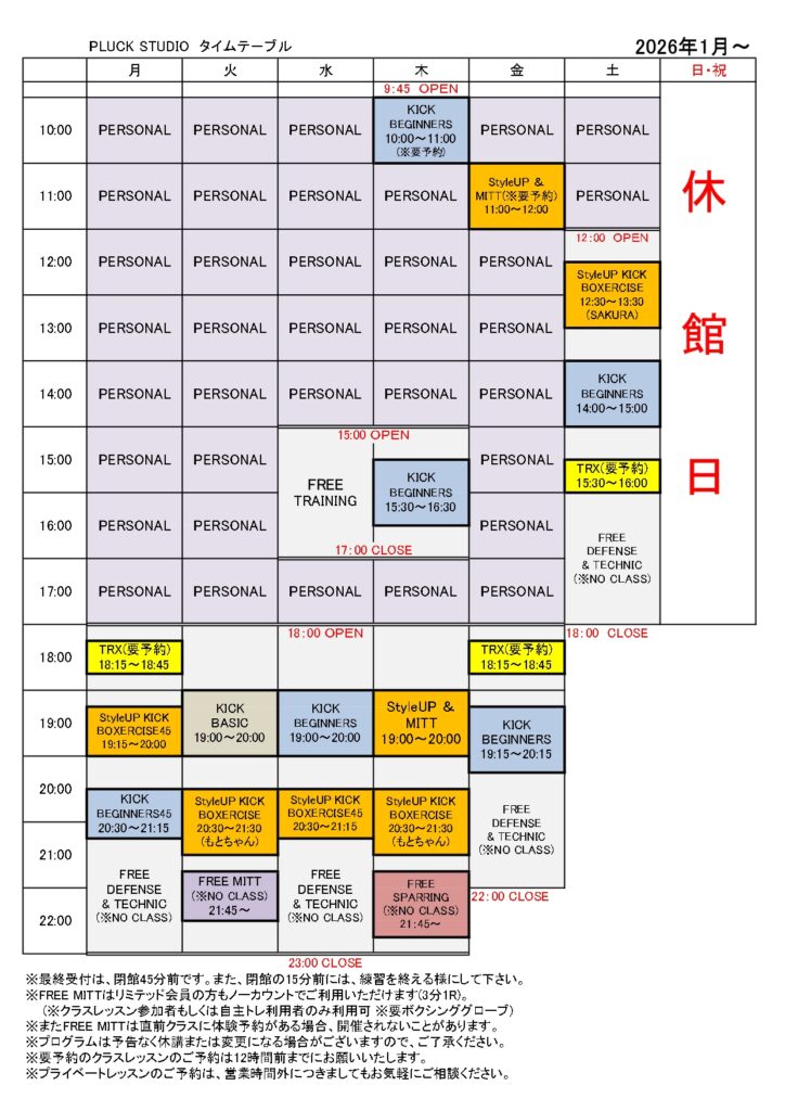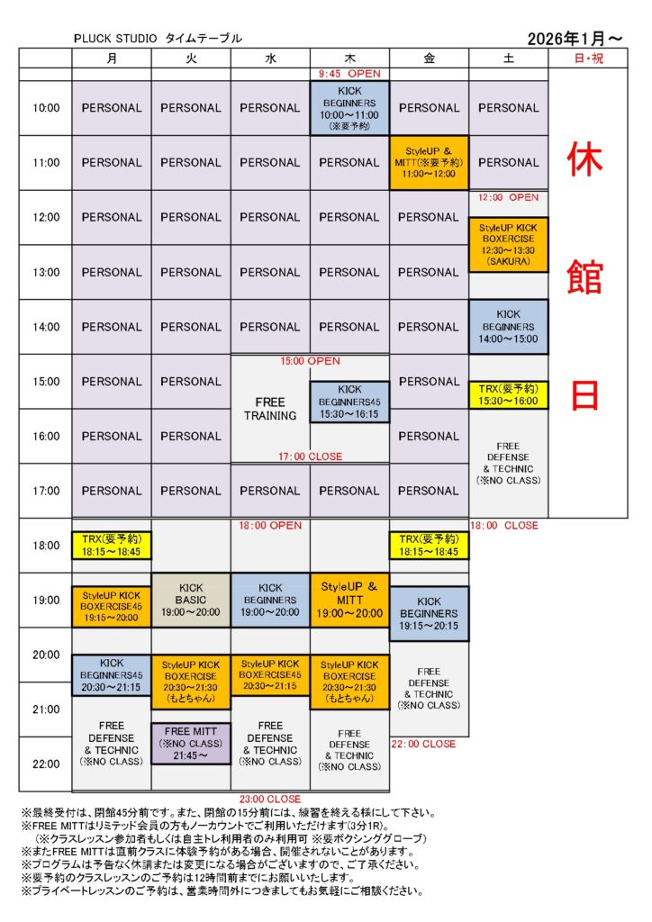 PLUCK STUDIO KICKBOXING FITNESS 体験予約はこちらか